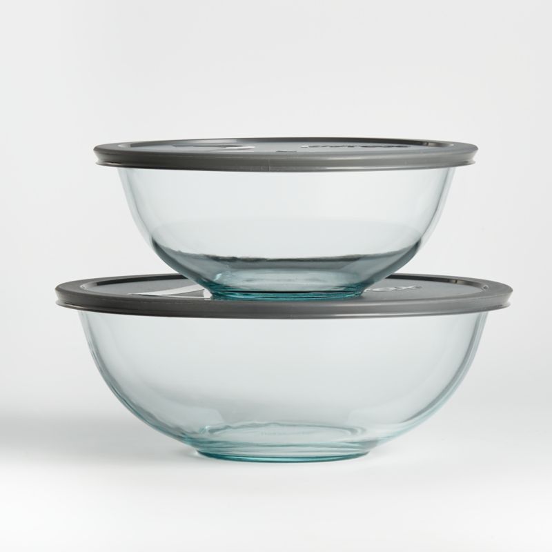 Pyrex Glass Bowls With Grey Lids Set Of 2 Reviews Crate And Barrel