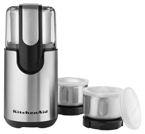 Coffee beans are poured into an accessible stainless steel bowl just unscrew the see-through lid and a fine grind is achieved in less than 30 seconds. Many coffee shops use it as a jack of all trades grinder that can handle guest espresso pour over decaf and whole bag grinding. KitchenAid - BCG111OB Coffee Grinder - Onyx Black.